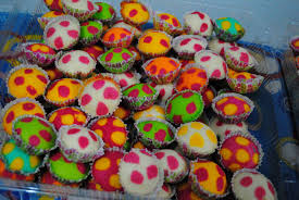 Bahan-bahan: 3biji telur (dari peti sejuk) 275gm tepung gandum 220gm gula halus 150gm susu segar 3sudu kecil baking powder 1sudu kecil ovallete Jem Blueberry, Strawberry @ apa-apa jenis filling (ikut kegemaran) Sedikit Pewarna merah dan ungu Cara membuat 1. Mula-mula masukkan susu, telur, ovallete, tepung, gula halus, baking powder dan pukul dengan kelajuan tinggi selama 6-8minit. 2. Selepas itu, bahagikan adunan kepada beberapa bahagian dan titiskan pewarna mengikut citarasa. 3. Masukkan setiap warna ke dalam piping bag, begitu juga dengan jem 4. Picitkan sedikit adunan ke dalam mangkuk kertas yang telah disusun di dalam acuan lompang. Picitkan filling secukupnya. 5. Kemudian picitkan lagi adunan yang berlainan warna sehingga ¾ penuh. Kemudian dot dot kan dengan warna pilihan. 6. Akhir sekali kukus didalam kukusan yang telah dipanaskan selama 10-15minit. Jangan buka api besar semasa mengukus. Gunakan api sederhana supaya apam tidak pecah. Penutup kukusan pula perlu ditutup dengan kain supaya air wap tidak terkena apam yang akan menyebabkan apam merekah.